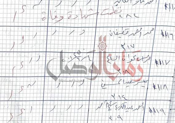 تحمل الوثيقة تاريخ 2 كانون الأول 2015، وهي واحدة من آلاف الوثائق التي حصلت عليها الصحيفة ضمن مبادرتها للكشف عن مصير المعتقلين المغيبين، تحت وسمي #مصير_معتقل و #خزائن_الموت، وتشمل قوائم بأسماء الضحايا الذين تمت تصفيتهم داخل معتقلات الدفاع الوطني.