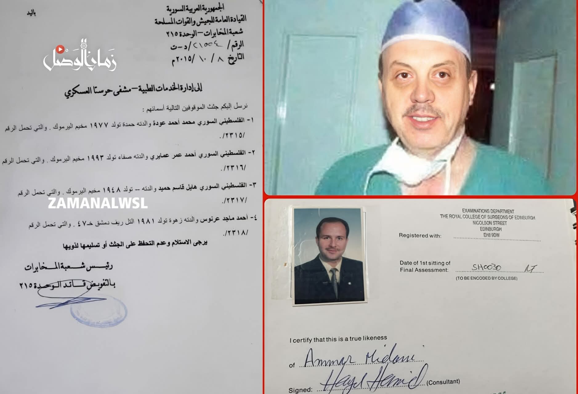 بعد أكثر من 13 عامًا على اعتقاله القسري، علمت عائلة الطبيب الفلسطيني السوري هايل قاسم حميد بوفاته في سجون النظام، عقب نشر "زمان الوصل" وثيقة رسمية صادرة عن مشفى حرستا العسكري، تتضمن تسليم جثث معتقلين بينهم عشرات الضحايا من اللاجئين الفلسطينيين في سوريا.