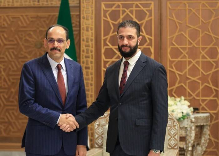 التقى الرئيس السوري أحمد الشرع، اليوم الأربعاء في دمشق، رئيس جهاز المخابرات التركي إبراهيم كالن.