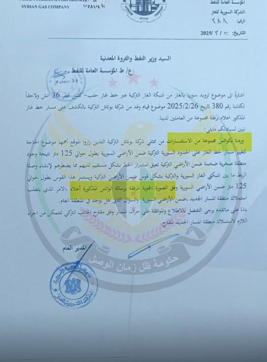 مسار خط الغاز السوري يُعدَّل بـ"موافقة خاصة" عبر واتساب بدلاً من السجلات الرسمية!