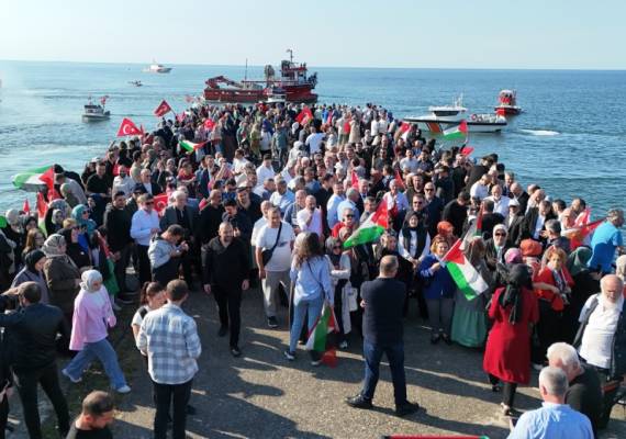 تجمع بحّارة أتراك في عدد من الولايات التركية شمالي البلاد، دعمًا لفلسطين و"أسطول الصمود العالمي" واحتجاجًا على اعتداءات إسرائيل، حيث أبحروا بسفنهم وقواربهم في مياه البحر الأسود.