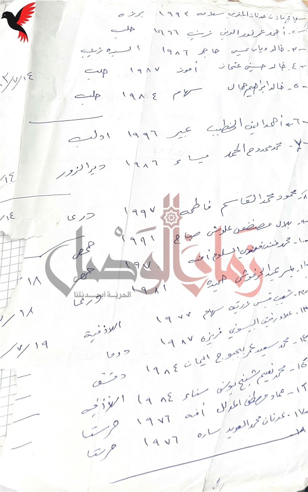 تنشر صحيفة "زمان الوصل"، ضمن مبادرة "أنا المعتقل"، أسماء ما وُصفت بـ"موجودات غرفة التبريد" في مشفى المجتهد بدمشق.