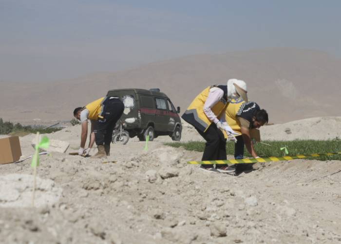 وأشار أن الفرق المختصة جمعت الرفات العظمية المكشوفة والمعرضة للعبث والتكسير نتيجة حراثة الأرض، مشيراً إلى أن المعطيات الأولية تشير إلى أن الرفات تعود لما بين 18 و20 شخصاً مجهولي الهوية، بينهم نساء وأطفال، دون العثور على أي متعلقات شخصية أو ملابس في المكان.