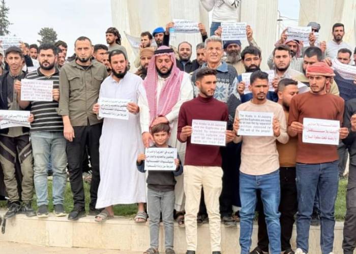 نظم أبناء القبائل والعشائر العربية في مدينة رأس العين بمحافظة الحسكة وقفة احتجاجية حاشدة اليوم الجمعة، أصدروا خلالها بياناً رسمياً أكدوا فيه تمثيلهم للأغلبية الساحقة في المنطقة الشرقية (90%) وطالبوا الرأي العام العالمي بالتدخل.