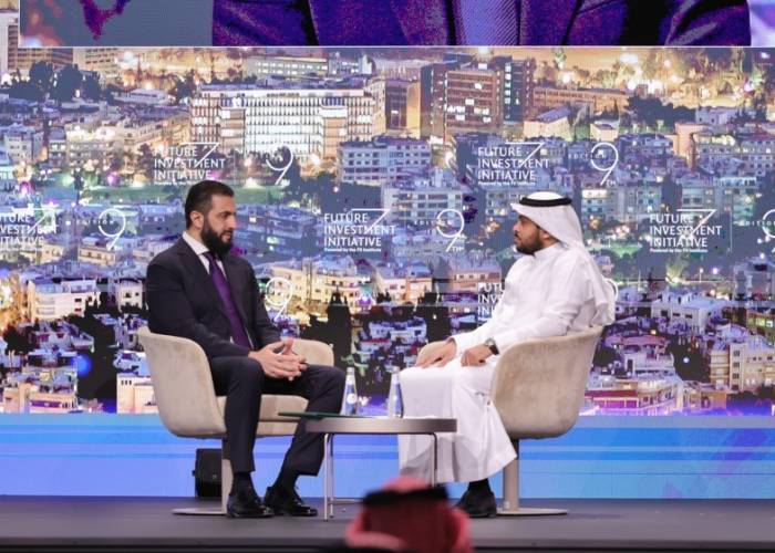 عقد الرئيس السوري أحمد الشرع جلسةً حواريةً استثنائية ضمن أعمال مؤتمر مبادرة مستقبل الاستثمار 2025 في العاصمة السعودية الرياض، بحضور ولي العهد السعودي الأمير محمد بن سلمان آل سعود، حيث استعرض خلالها رؤية سوريا لمرحلة التعافي الاقتصادي والفرص الواسعة المتاحة أمام المستثمرين، خصوصاً في مجالات إعادة الإعمار والتنمية المستدامة.