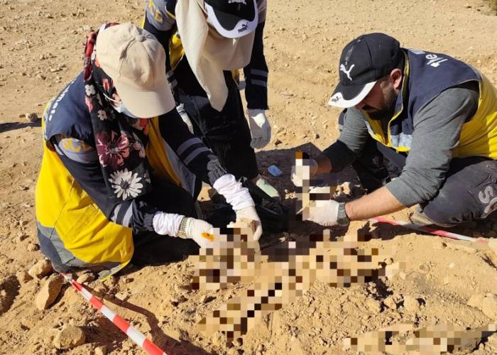 وجمع الفريق المختص رفاتاً عظمية مكشوفة ومختلطة يُرجّح أنها تعود لنحو أربعة أشخاص مجهولي الهوية وفق المعطيات الأولية، حيث تم العمل وفق البروتوكولات المعتمدة في توثيق وجمع وانتشال الرفات، تمهيداً لتسليمها إلى الجهات المعنية لاتخاذ الإجراءات اللازمة.
