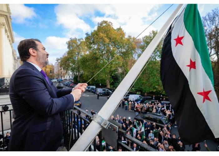 رفع وزير الخارجية والمغتربين أسعد حسن الشيباني، اليوم الخميس، العلم السوري فوق مبنى السفارة السورية في العاصمة البريطانية لندن، إيذاناً بإعادة افتتاحها بعد سنوات من الإغلاق.