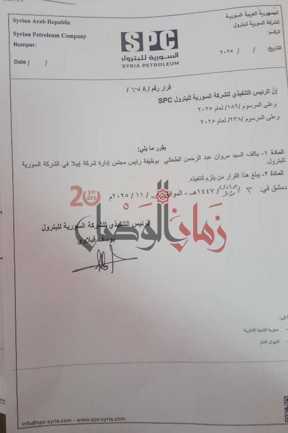 تؤكد هذه القرارات على استمرار عملية التحديث الإداري داخل الشركة السورية للنفط لضمان متابعة وإدارة الأنشطة النفطية والمشاريع الاستثمارية بكفاءة عالية.