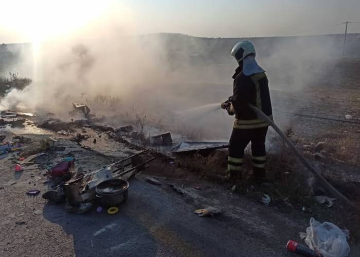 كما اندلع حريق داخل خيمة في مخيم دير بلوط بناحية جنديرس في ريف حلب، وأسفر عن إصابة طفل بحروق، عملت فرق الدفاع المدني على إسعافه إلى المشفى لتلقي العلاج.