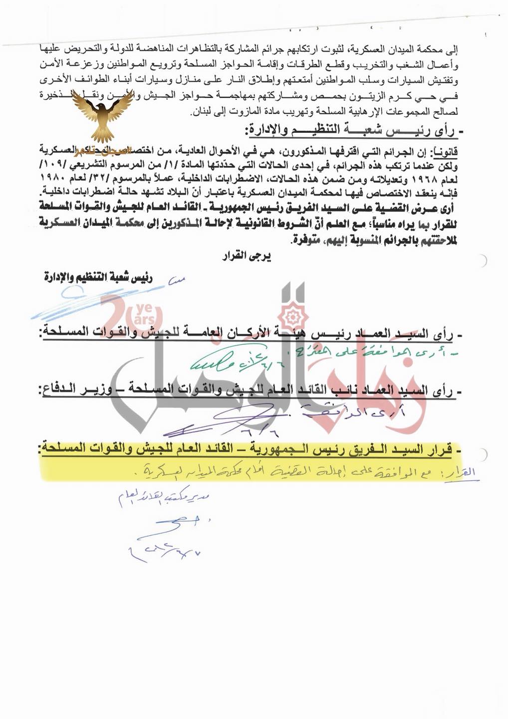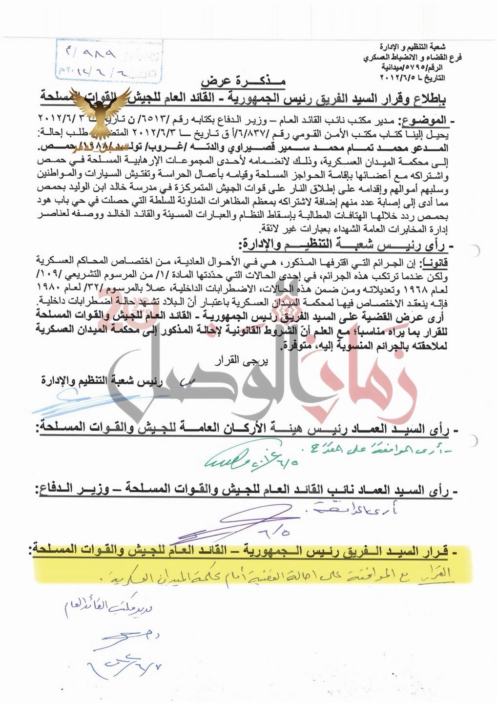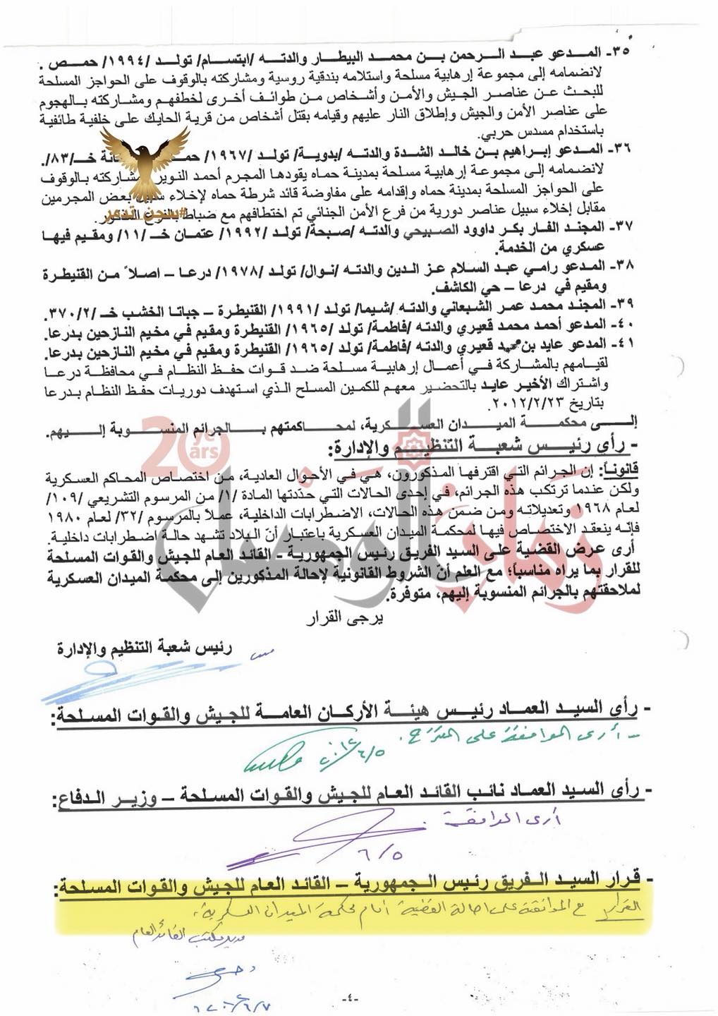 وثائق تحويل عشرات المنشقين من مكتب الأسد إلى محكمة الميدان العسكرية