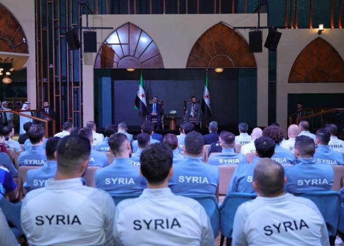 الرئيس الشرع يلتقي بعثة المنتخب السوري لكرة القدم في الدوحة