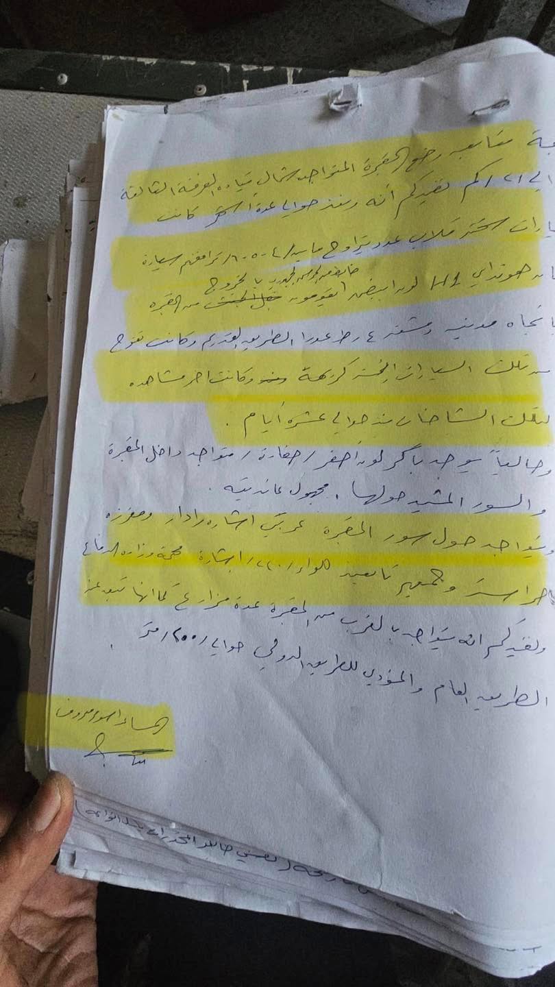 توضح الوثيقة طلب رئاسة الشعبة التدقيق الفوري بما نشرته الجريدة، بعد رصد توسعة المقبرة، وبناء سور بطول 904 أمتار، وحراسة عسكرية، وإشراف ضابط من الحرس الجمهوري. سجّلت المذكرات دخول شاحنات تنقل جثثاً وروائح كريهة، وحركة حفارات داخل السور.