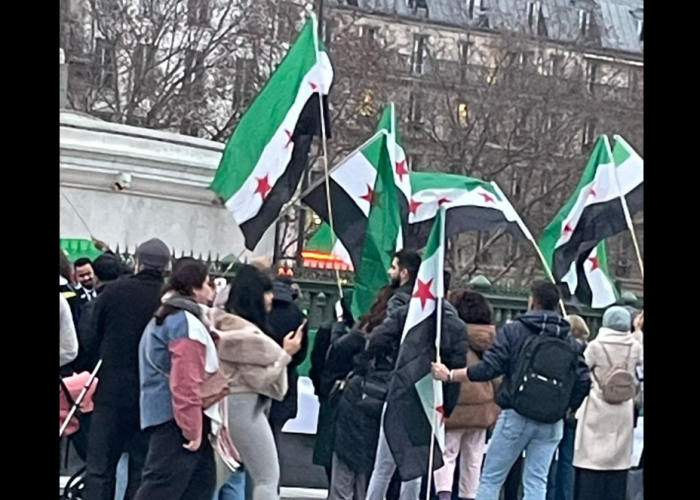 سوريون يحتفلون في ساحة الباستيل بباريس بذكرى سقوط نظام الأسد