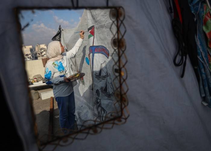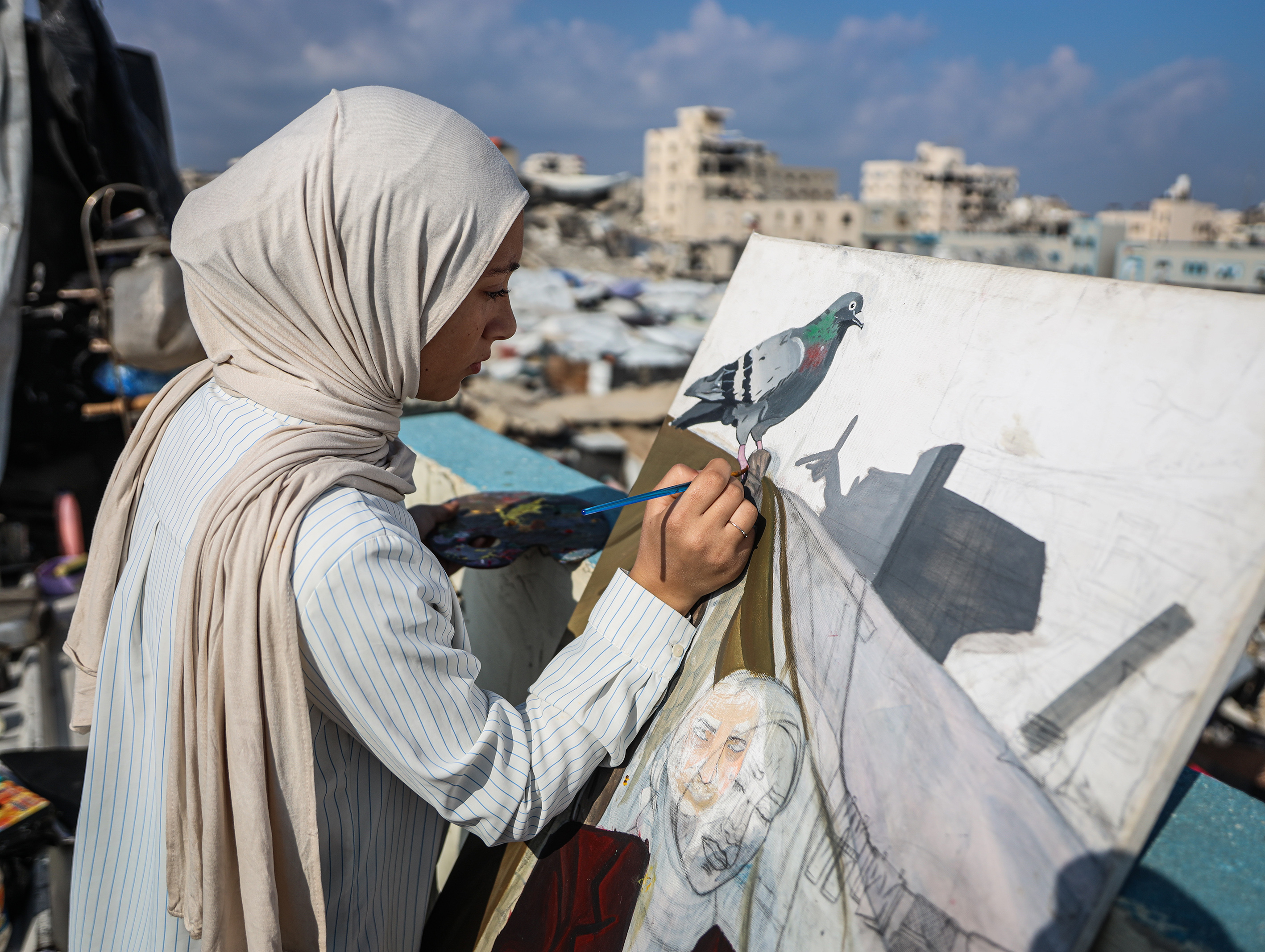 خلال نزوحها، فقدت سارة (15 عاما) منزل عائلتها وجميع لوحاتها السابقة تحت أنقاض القصف، لتبدأ مرحلة جديدة من الرسم داخل خيمة النزوح، مستخدمة ما يتوفر لها من أدوات في بيئة قاسية.