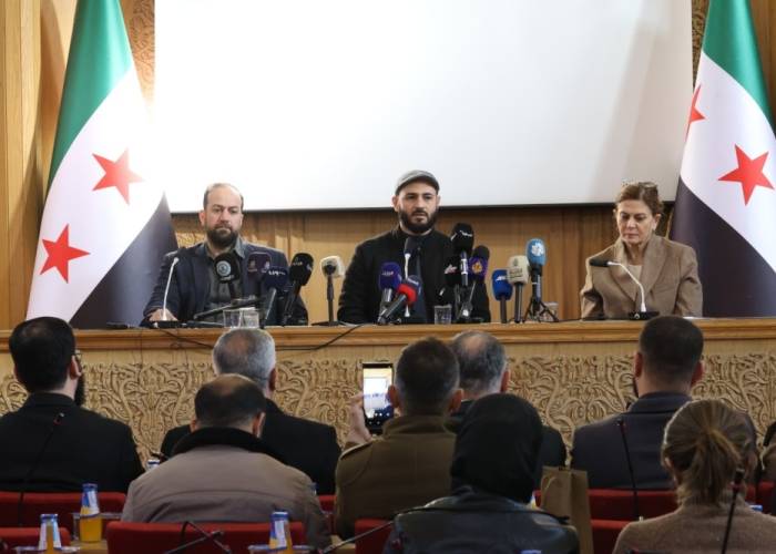 عُقد اليوم السبت في مبنى محافظة حلب مؤتمر صحفي ضمّ محافظ حلب عزام الغريب، ووزير الإعلام حمزة المصطفى، ووزيرة الشؤون الاجتماعية والعمل هند قبوات، للحديث عن آخر التطورات في المدينة.
