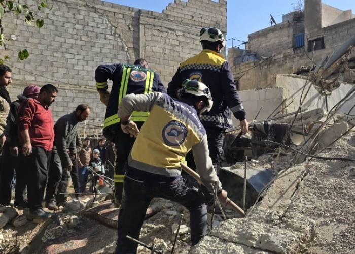 وأفاد الدفاع المدني السوري في وزارة الطوارئ وإدارة الكوارث أن فرق الإنقاذ استجابت فور تلقي البلاغ، وتمكنت من إنقاذ الشاب من تحت الأنقاض، فيما قام مدنيون بإنقاذ الطفلين والزوج، بينما عملت الفرق على انتشال جثامين الضحايا ونقلهم إلى مشفى المدينة.