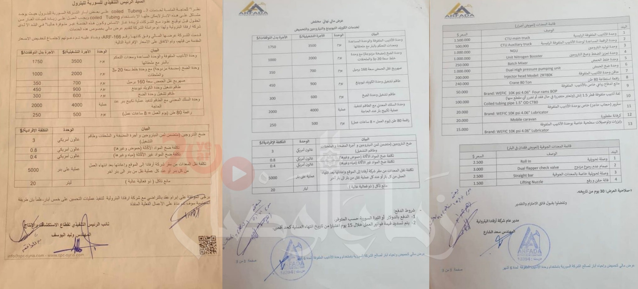 كشفت مصادر مطلعة عن وجود تجاوزات قانونية ومالية شابت عملية إبرام عقد بنظام "التعاقد بالتراضي" بين الشركة السورية للنفط وشركة "أرفادة" (Arfada) الخاصة، والمتعلق بتقديم خدمات الأنابيب المرنة (Coiled Tubing).