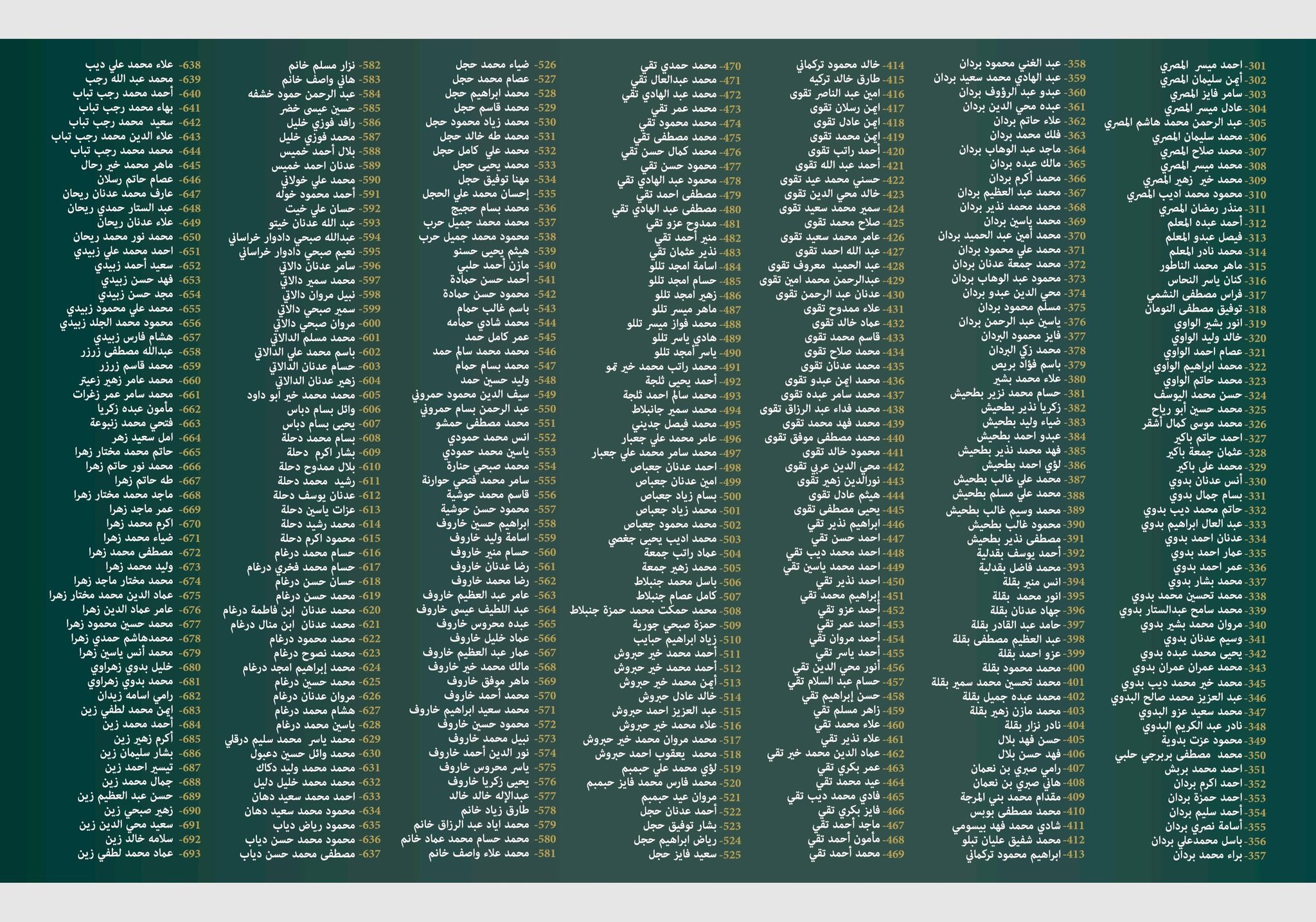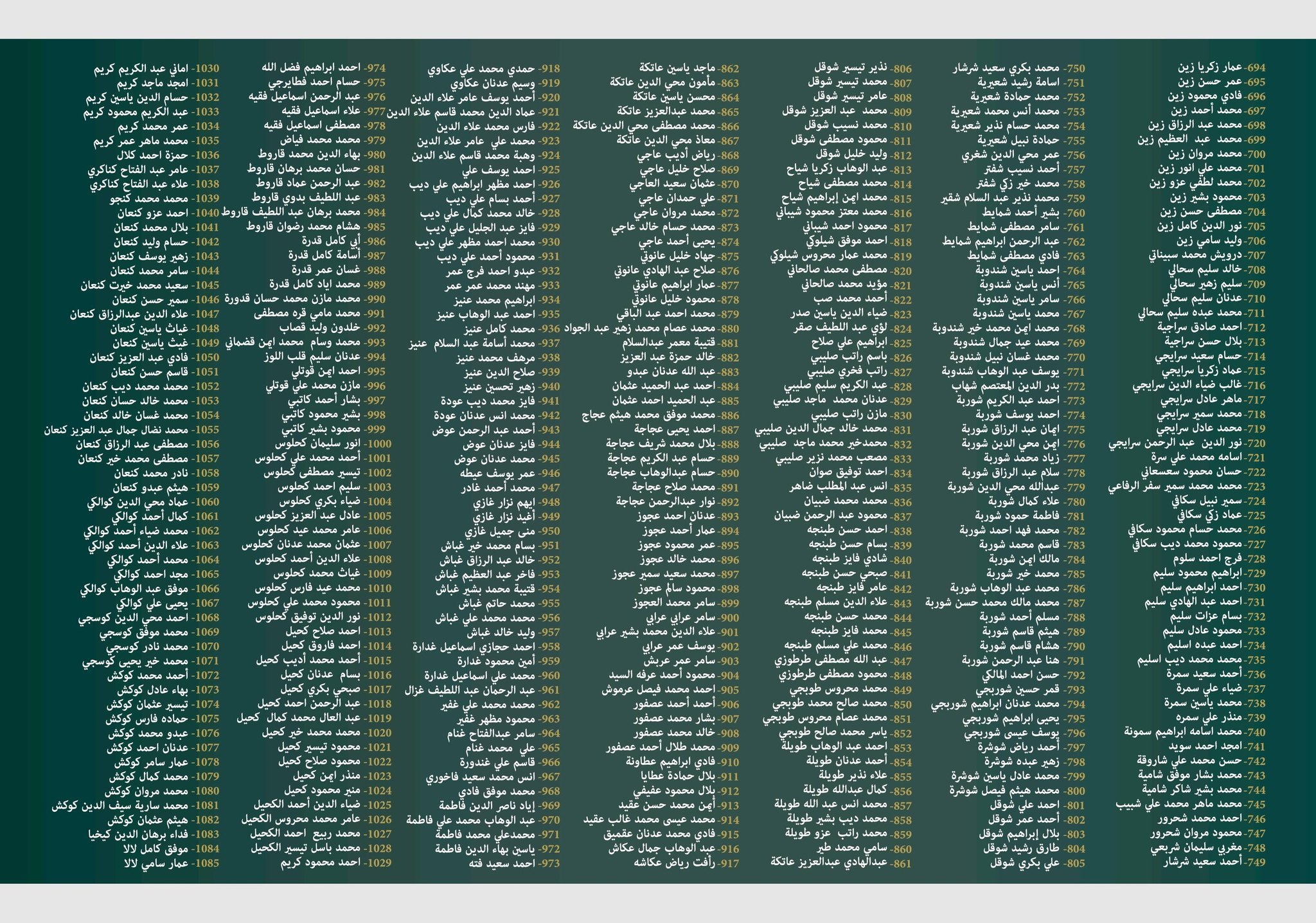 حصلت "زمان الوصل" على قوائم توثيقية تضم أسماء أكثر من 1200 شهيد من أبناء حي كفرسوسة بالعاصمة دمشق، ارتقوا خلال سنوات الثورة السورية.