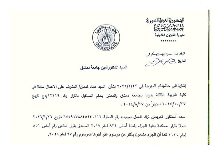 بسبب "جرم ترك العمل" عام 2014.. أكاديمي ثوري يصطدم بمخلفات قوانين الأسد على الحدود