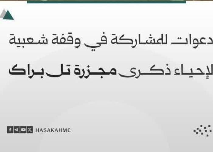 ودعا منظمو الوقفة جميع أبناء تل براك، كباراً وصغاراً، إلى جانب كل من يرغب بالمشاركة، للحضور والتفاعل في هذه المناسبة.