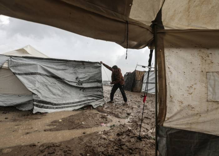 أغرقت مياه الأمطار، فجر الثلاثاء، خيام نازحين فلسطينيين بمناطق متفرقة من قطاع غزة، في أول منخفض جوي يؤثر على القطاع منذ بدء شهر رمضان، ما فاقم من المأساة الإنسانية التي يعيشونها في ظل تقييد إسرائيل لإدخال مقومات الإيواء.