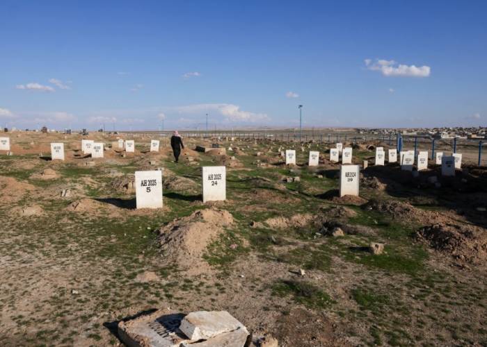 في مقبرة قرب مخيم الهول شمال شرقي سوريا، ينتظر نحو ألف جثمان لا تحمل أسماء تحديد هوية أصحابها، في أعقاب تحرير المخيم مؤخرًا من سيطرة تنظيم "قسد".