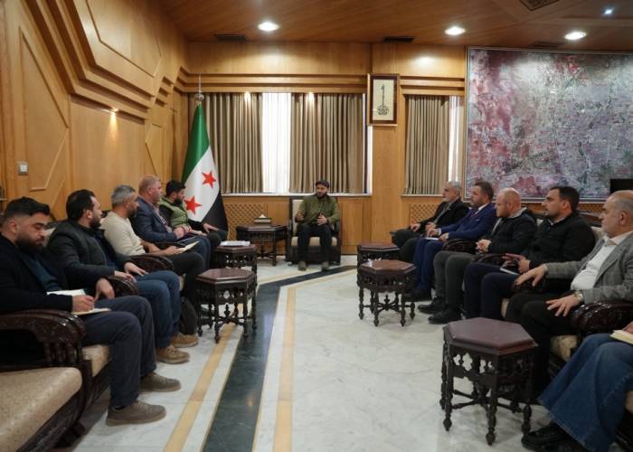 بحث محافظ حلب المهندس عزّام الغريب خلال اجتماع في مبنى المحافظة تطوير واقع السير عبر تحديث الإشارات الضوئية وتنظيم المحاور الحيوية وتركيب شاخصات وعواكس أرضية.