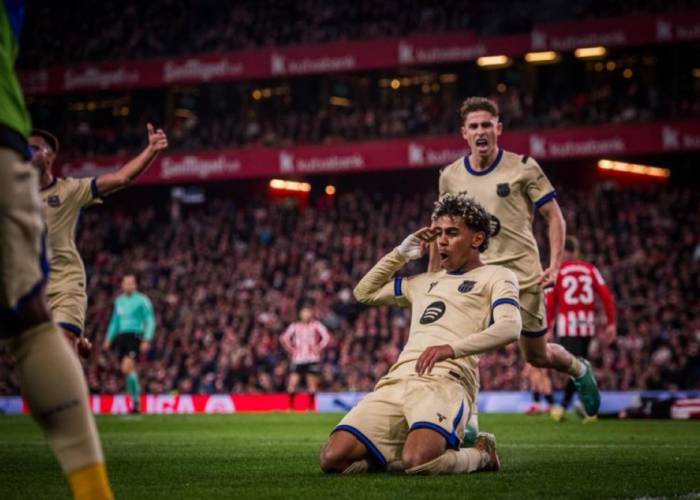 سجل لامين يامال هدفا في الشوط الثاني ليمنح برشلونة فوزا صعبا 1- 0 على مضيفه أتليتيك بيلباو في الدوري الإسباني يوم السبت، والحفاظ على فارق الأربع نقاط الذي يفصله في الصدارة عن ريال مدريد ثاني الترتيب.