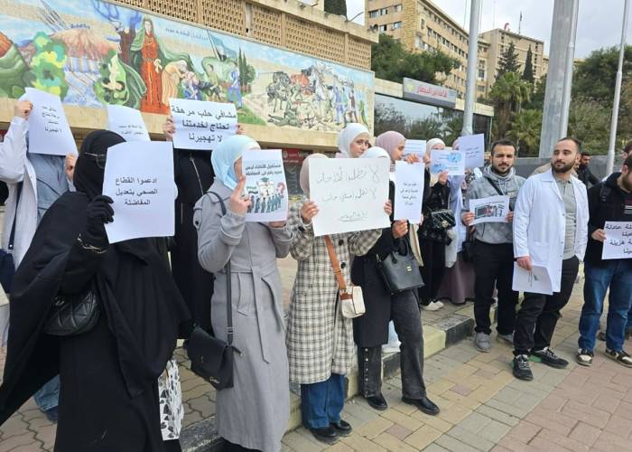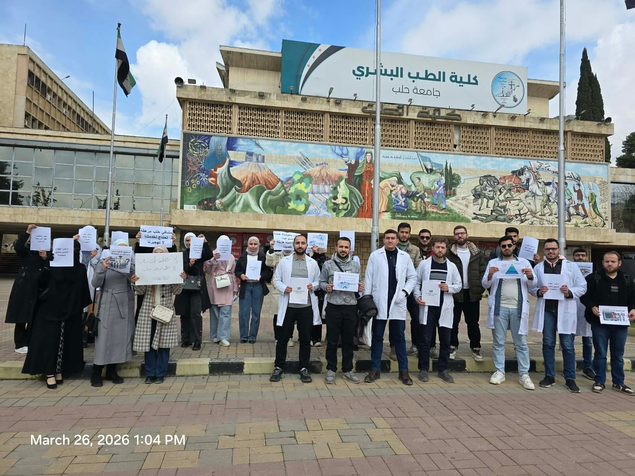 نفذت مجموعة من طلاب كلية الطب البشري في جامعة حلب اعتصاماً احتجاجياً، للمطالبة بزيادة عدد المقاعد المخصصة للمحافظة ضمن "المفاضلة الطبية الموحدة"، محذرين من تبعات ما وصفوه بـ "الإجحاف" في توزيع الاختصاصات.
