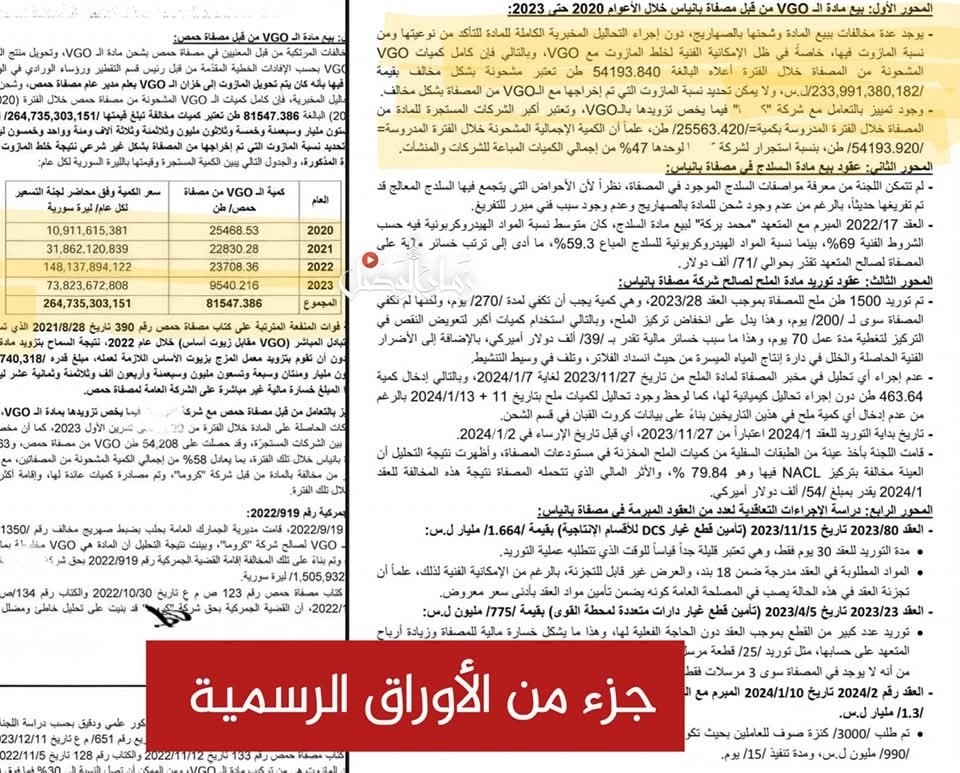 تبخرت 600 مليار ليرة سورية من ميزانية مصافي حمص وبانياس بين عامي 2022 و2023، نتيجة عمليات تهريب مشتقات نفطية (VGO) تورط فيها "لواء القدس" التابع للنظام البائد.