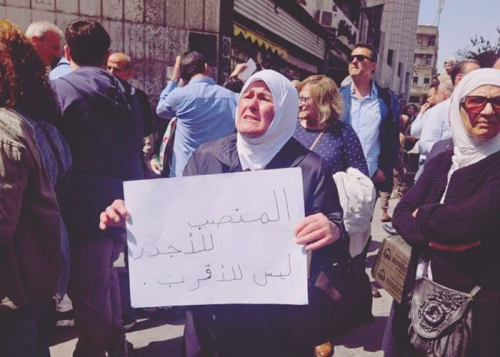 شهدت ساحة المحافظة في العاصمة السورية، اليوم الجمعة 17 نيسان، تواجد مظاهرتين متزامنتين؛ الأولى اعتصام تحت شعار "قانون وكرامة" يطالب بتحسين الأوضاع المعيشية والخدمات، والأخرى مظاهرة مؤيدة للحكومة رافعة رايات التوحيد، فيما تدخلت قوات الأمن الداخلي لفصل الجانبين.