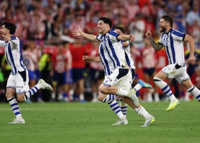 تغلب ريال سوسيداد على أتليتيكو مدريد 4-3 بركلات الترجيح ليفوز ​بكأس ملك إسبانيا لكرة القدم يوم السبت، ‌بعد تعادلهما 2-2 في نهاية الوقت الإضافي، إذ أنقذ حارس مرماه أوناي ماريرو ركلتين ترجيحيتين ليساعد فريقه على ​الفوز بالكأس للمرة الرابعة.