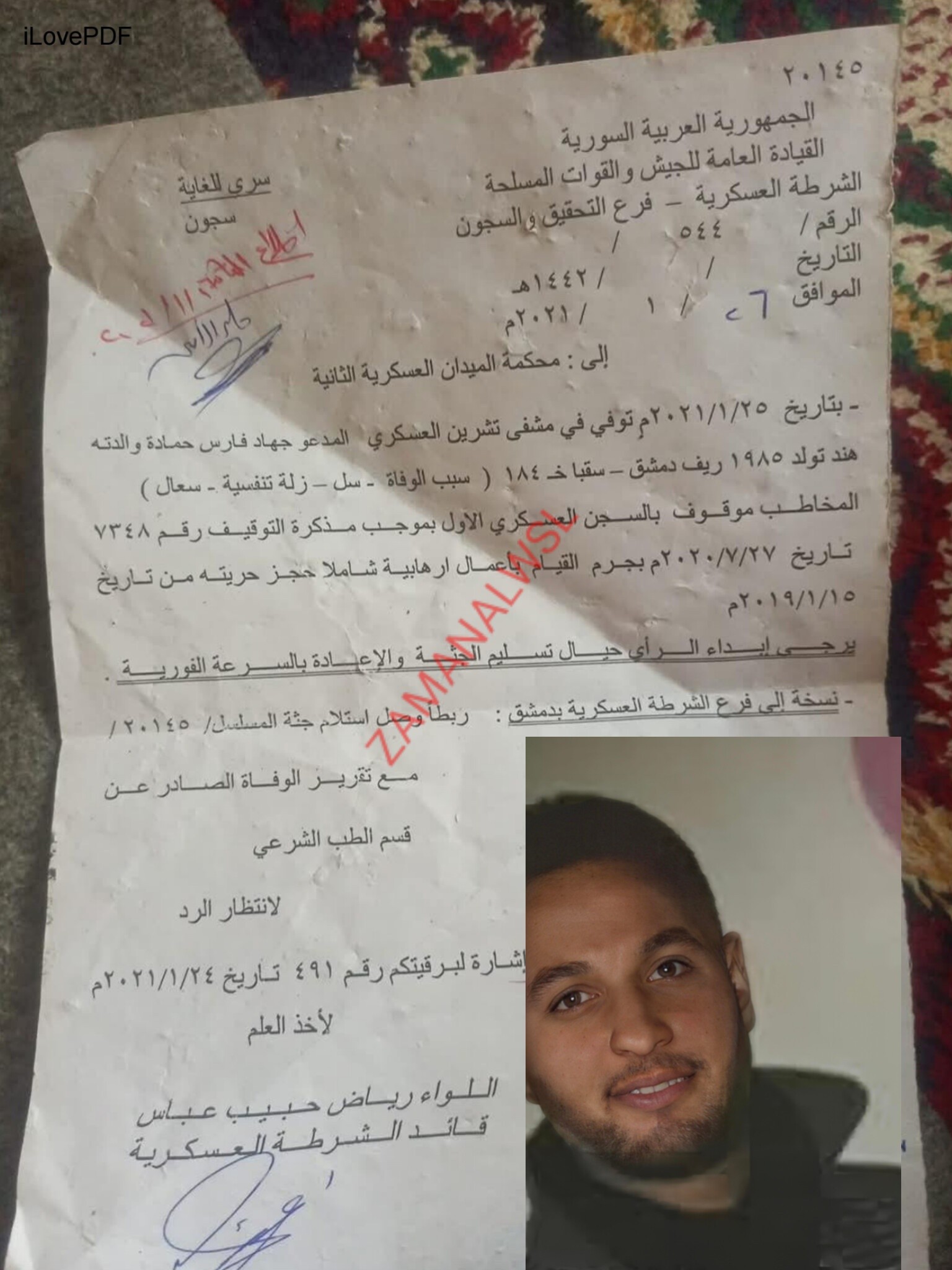 وجاء ذلك عقب فحص العائلة لوثيقة رسمية وردت ضمن 100 وثيقة نشرتها "زمان الوصل" صباح يوم 27 نيسان 2026.