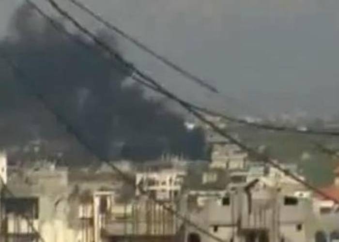احتراق المنازل بعد القصف المدفعي لقوات الجيش السوري على مدينة انخل :