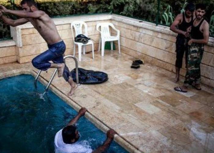 في ريف حمص وفي استراحات المعارك شاهدتهم يلعبون الكرة داخل أسوار المزارع يسبحون داخل أحواض السباحة أو "حواصل المياه" يستحمون ثم ينامون في ظل شجرة على بطون خاوية.