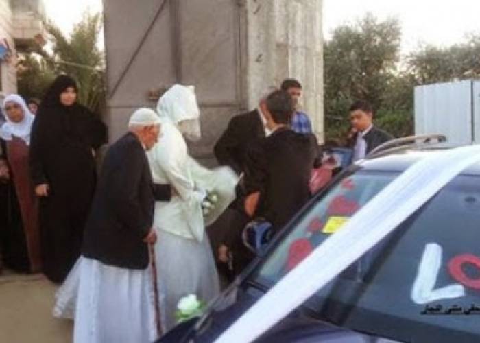 تسبب إغلاق معبر رفح البري بين غزة ومصر في عدم حضور عريس فلسطيني لزفافه لهذا اضطرت العروس فلسطينية إلى الاحتفال بيوم زفافها مع صورة عريسها