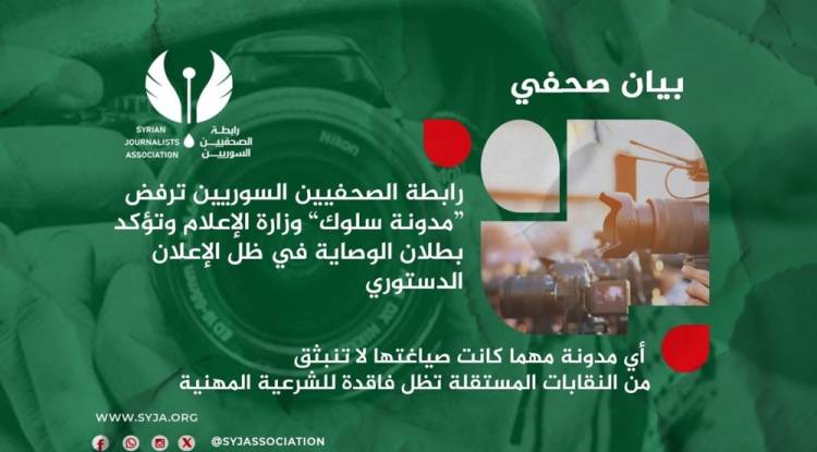 أعربت رابطة الصحفيين السوريين عن رفضها القاطع لتوجهات وزارة الإعلام الرامية لإطلاق ما سُمي بـ "مدونة سلوك مهني" والمزمع إعلانها في منتصف شباط الجاري، معتبرة هذه...