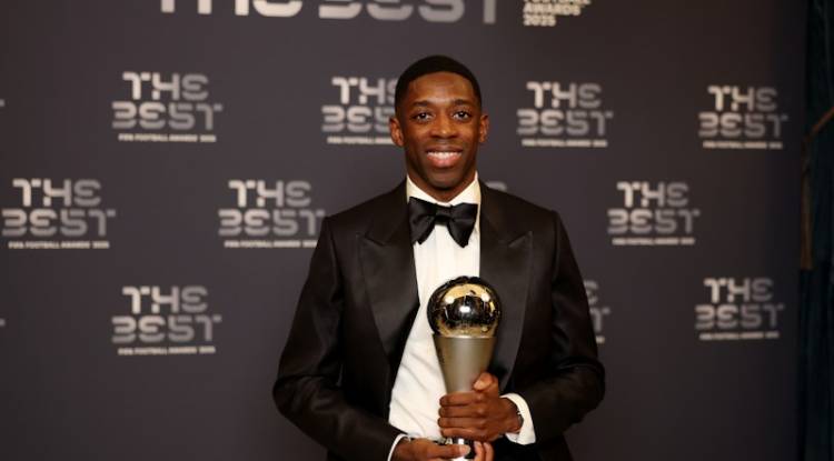 توج الفرنسي عثمان ديمبيلي، نجم فريق باريس سان جيرمان، بجائزة "ذا بيست" لأفضل لاعب في العالم لعام 2025، المقدمة من الاتحاد الدولي لكرة القدم "فيفا" خلال الحفل الذي...